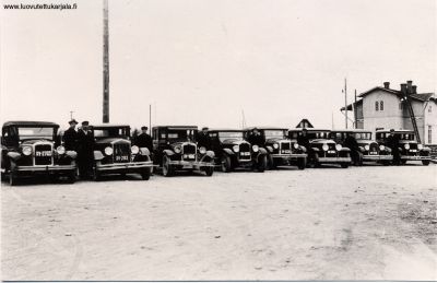 Kanneljärven aseman komea "pirssi" 1935. Vas. Viljo Muurman, Aleks Seppänen, Toivo Kauranen, Herman Havia, Tahvo Havia, Lauri Wikström, Pentti Kauranen ja Kalle Lampainen (Herman Havia)