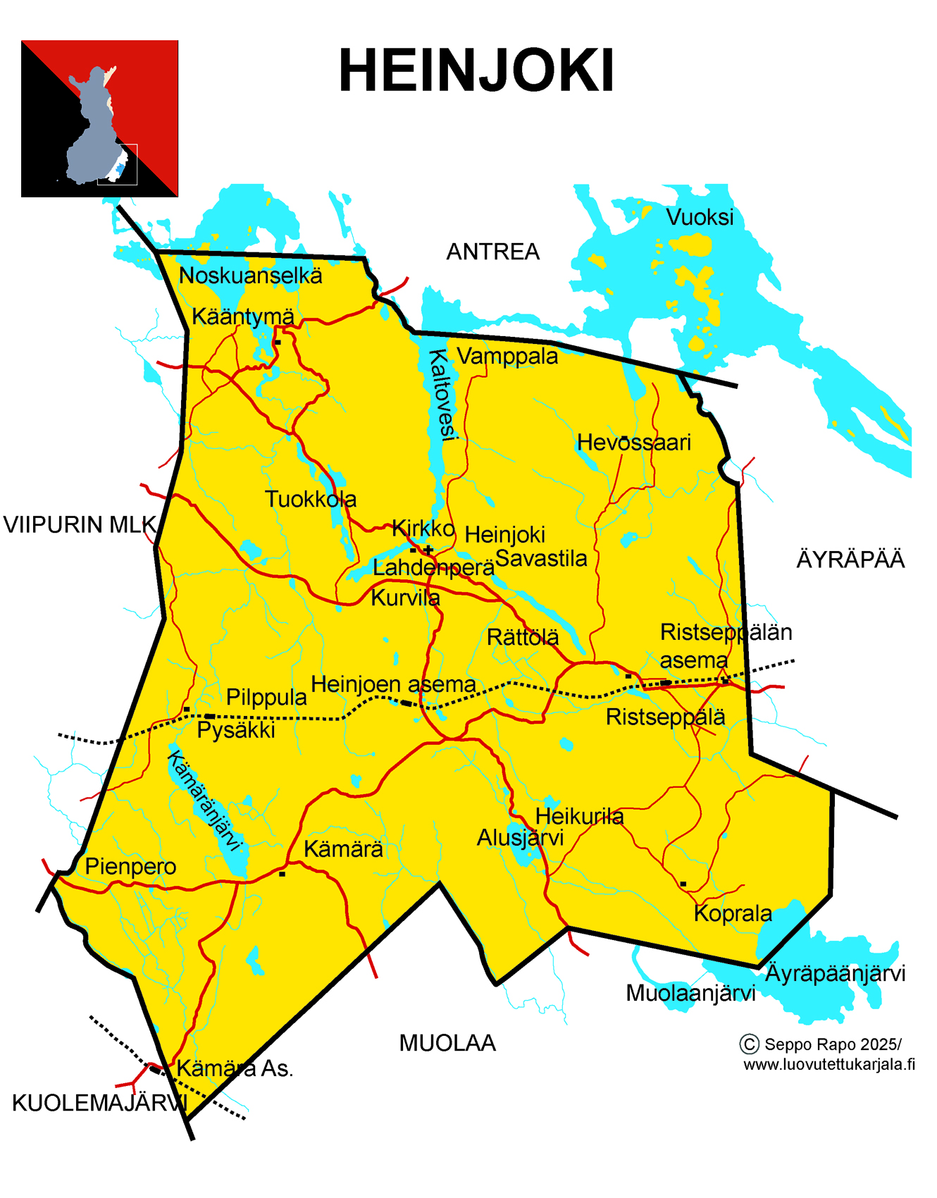 Lähteet: Martti I Jaatinen: Karjalan kartat/ Karjalan Liitto ry./ 1997 Vaakuna: Heinjoki-Säätiö