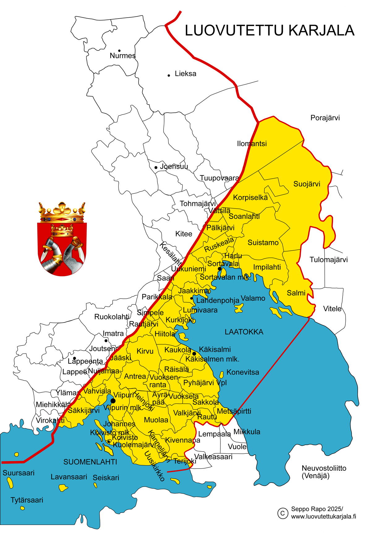 Lähteet: Martti I Jaatinen: Karjalan kartat/ Karjalan Liitto ry./ 1997 Vaakuna: Seppo Rapo